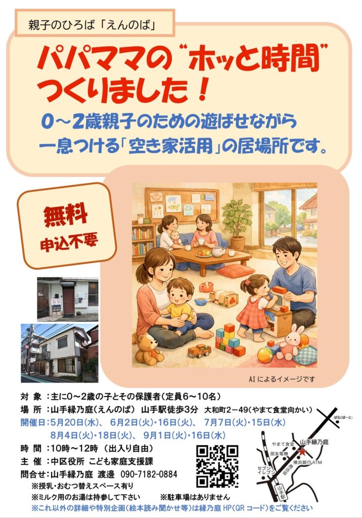 中区役所と山手縁乃庭のコラボによる「親子のひろば」が始まります!